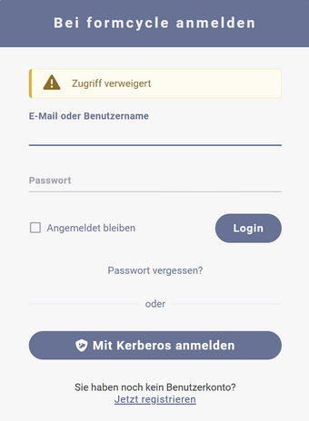Bei einer Anmeldung im formcycle-Backend kann es unter Umständen zur Meldung „Zugriff verweigert” kommen.